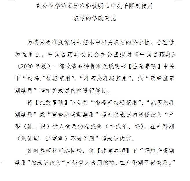 中国兽药典委员会办公室关于2020年第八批兽药国家标准制修订草案的公示 2020-07-02